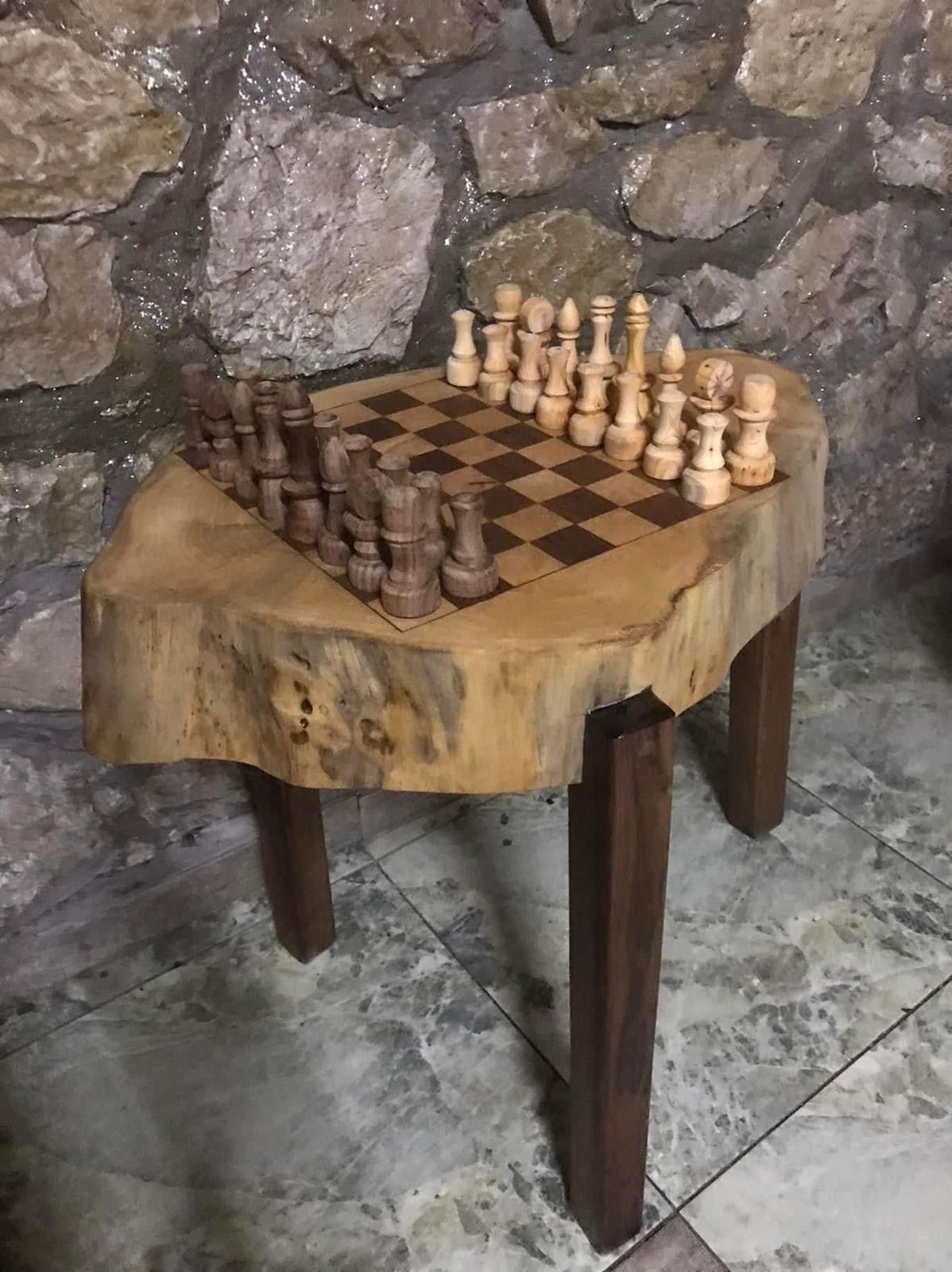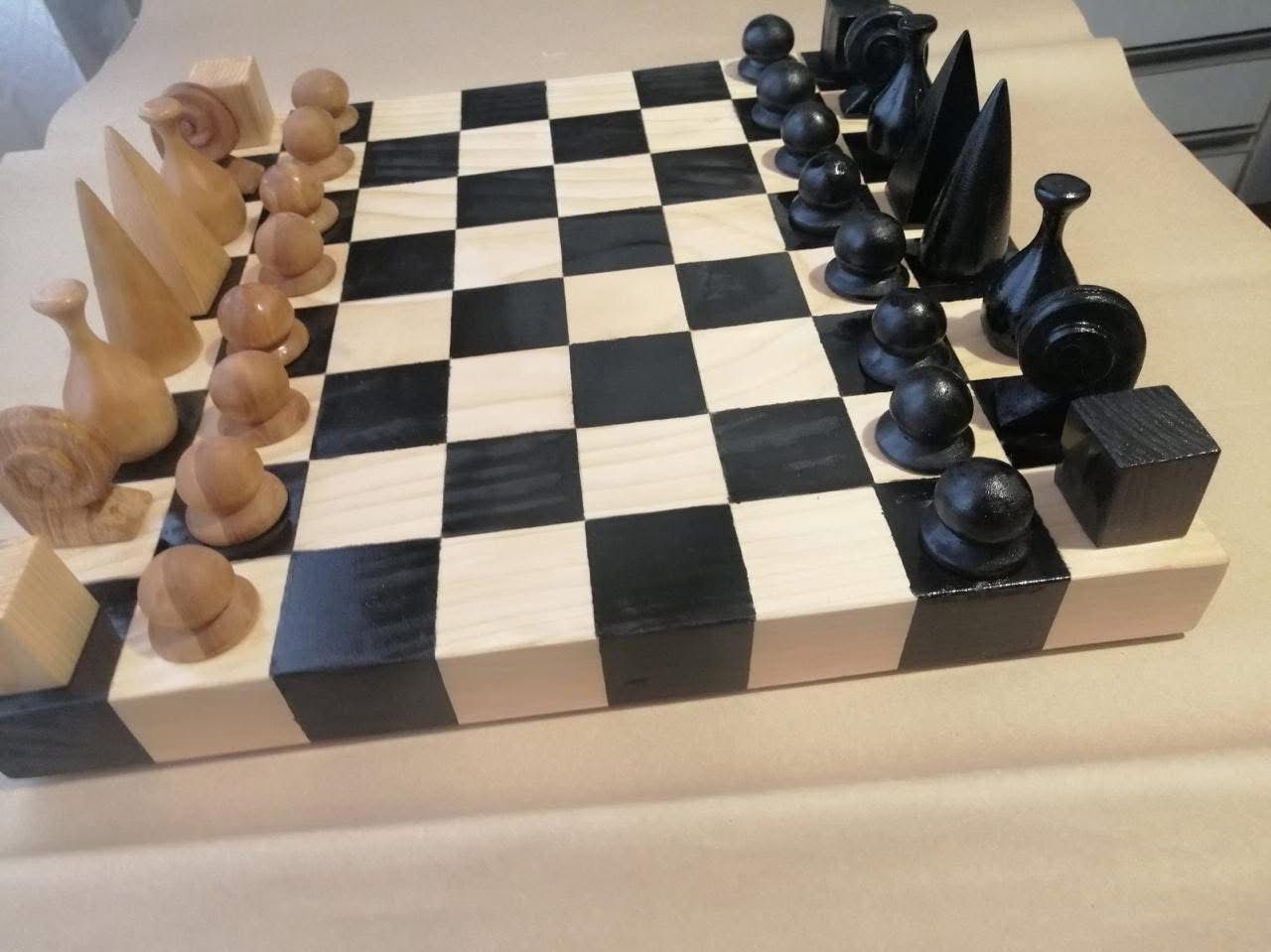 გასართობი: ხელით ნაკვეთი ხის ჭადრაკები.