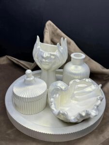 – მოგვიყევით პირველი ნაბიჯების შესახებ, რამდენად რთული იყო დასაწყისი? – პირველი ნაბიჯები მარტივი არ ყოფილა. ხელოვნების სფეროსგან ადრე ძალიან შორს ვიყავით. 6 თვეზე მეტი დაგვჭირდა ექსპერიმენტებისთვის, სანამ მასა იდეალურ შედეგამდე მივიყვანეთ და ნაკეთობებმა ის ხარისხი მიიღო, რაც ჩვენთვის მისაღები იყო. გულწრფელ მადლობას ვუხდით ყველას, ვინც პირველ ეტაპზე გვიკვეთავდა და ამით ჩვენს განვითარებას უწყობდა ხელს.